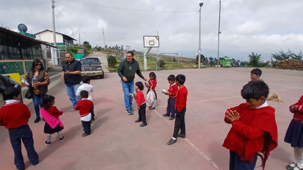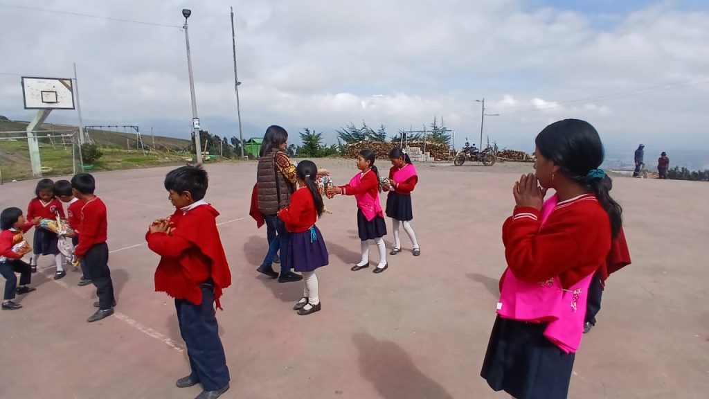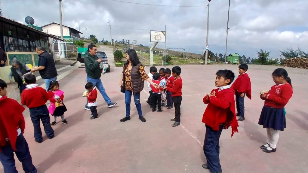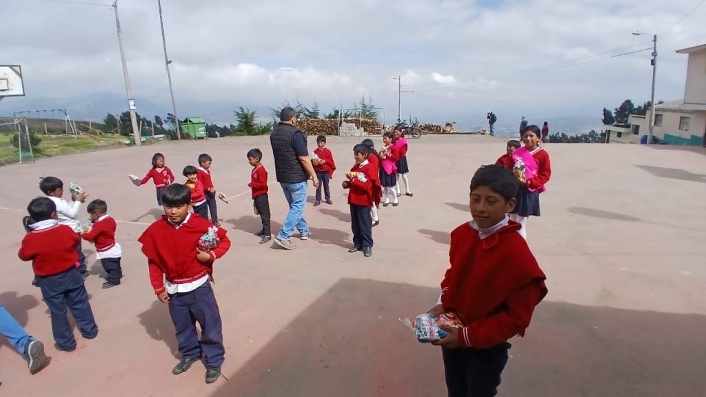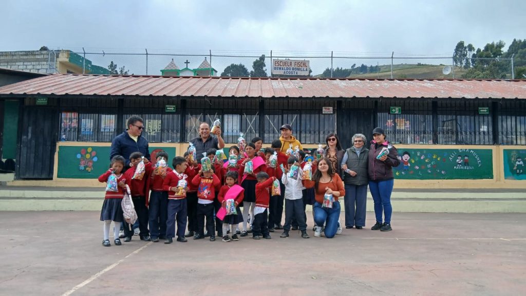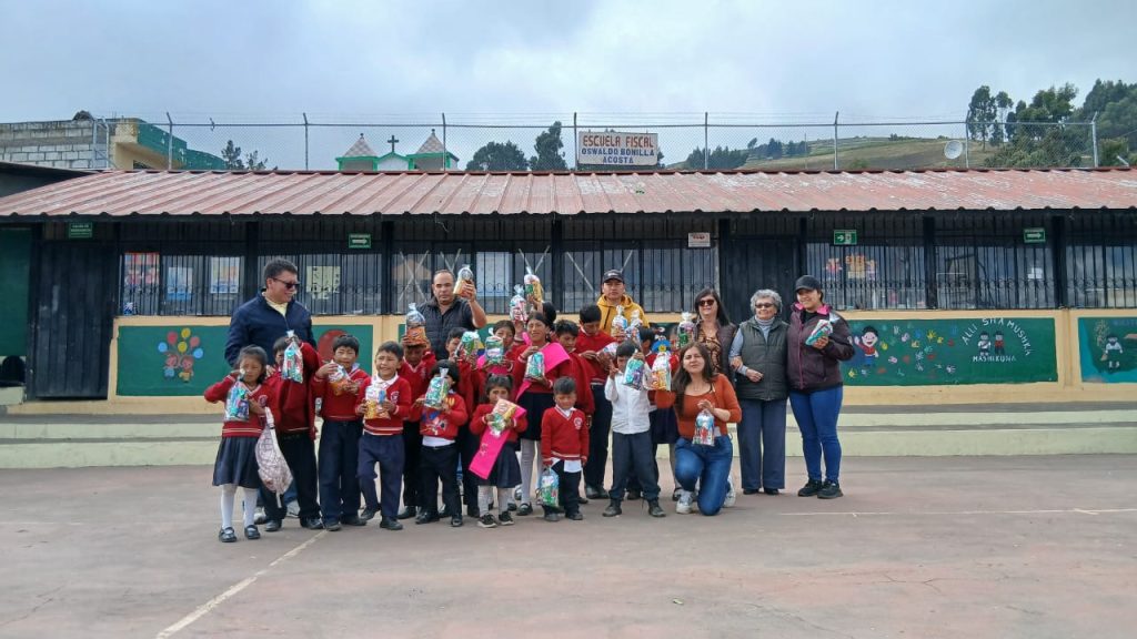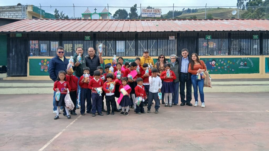A pedido de Jessy Bonilla Carrillo, presidenta del “Clan Bonilla Acosta”, la ACRQ participó del agasajo navideño que estaba previsto para el lunes 22 de diciembre, contribuyendo con 50 fundas de caramelos para los niños de la Unidad Educativa Intercultural Bilingüe “Oswaldo Bonilla Acosta”, ubicada en la Comunidad Compañía Chica, Parroquia de Cusubamba, Cantón Salcedo.