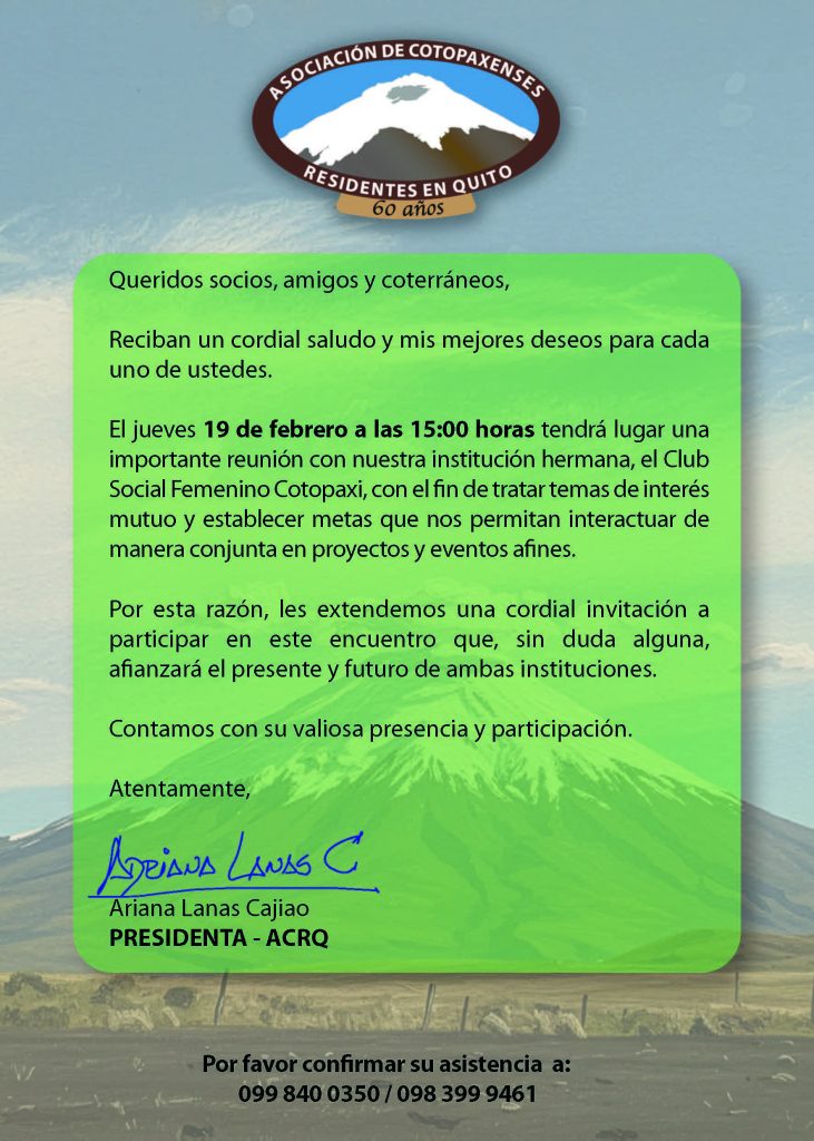“Las opiniones publicadas en este espacio son de exclusiva responsabilidad de sus autores y no necesariamente representan la opinión de la Asociación de Cotopaxenses Residentes en Quito. Todas las opiniones han sido publicadas con la expresa autorización de sus autores.